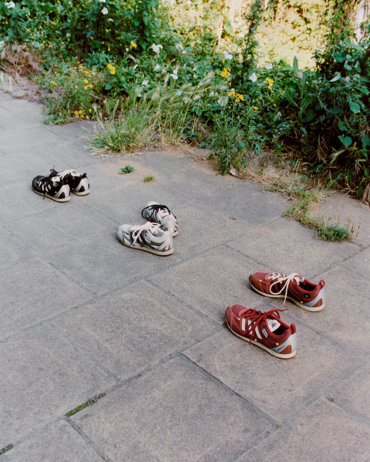 Meanwhile, the Adizero is a model from the archive that’s stripped of any bulk and kept close to the ground. It adds metal studs, antiqued rubber and mismatched laces for an odd yet familiar feel.