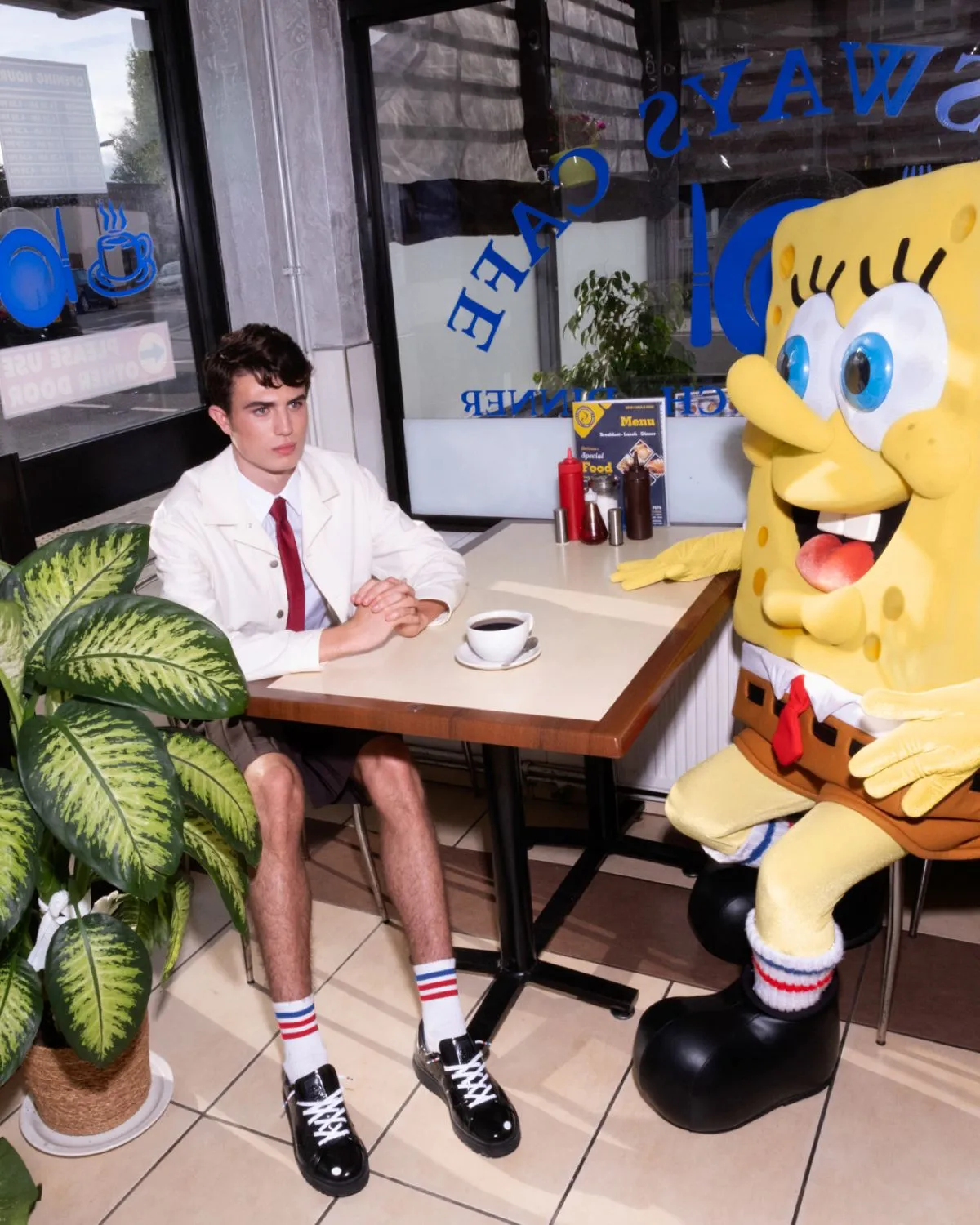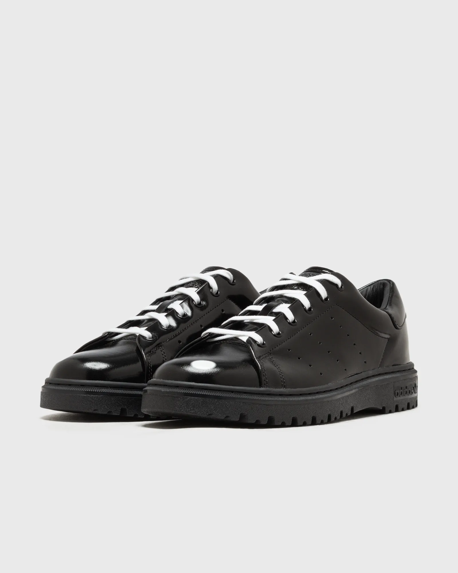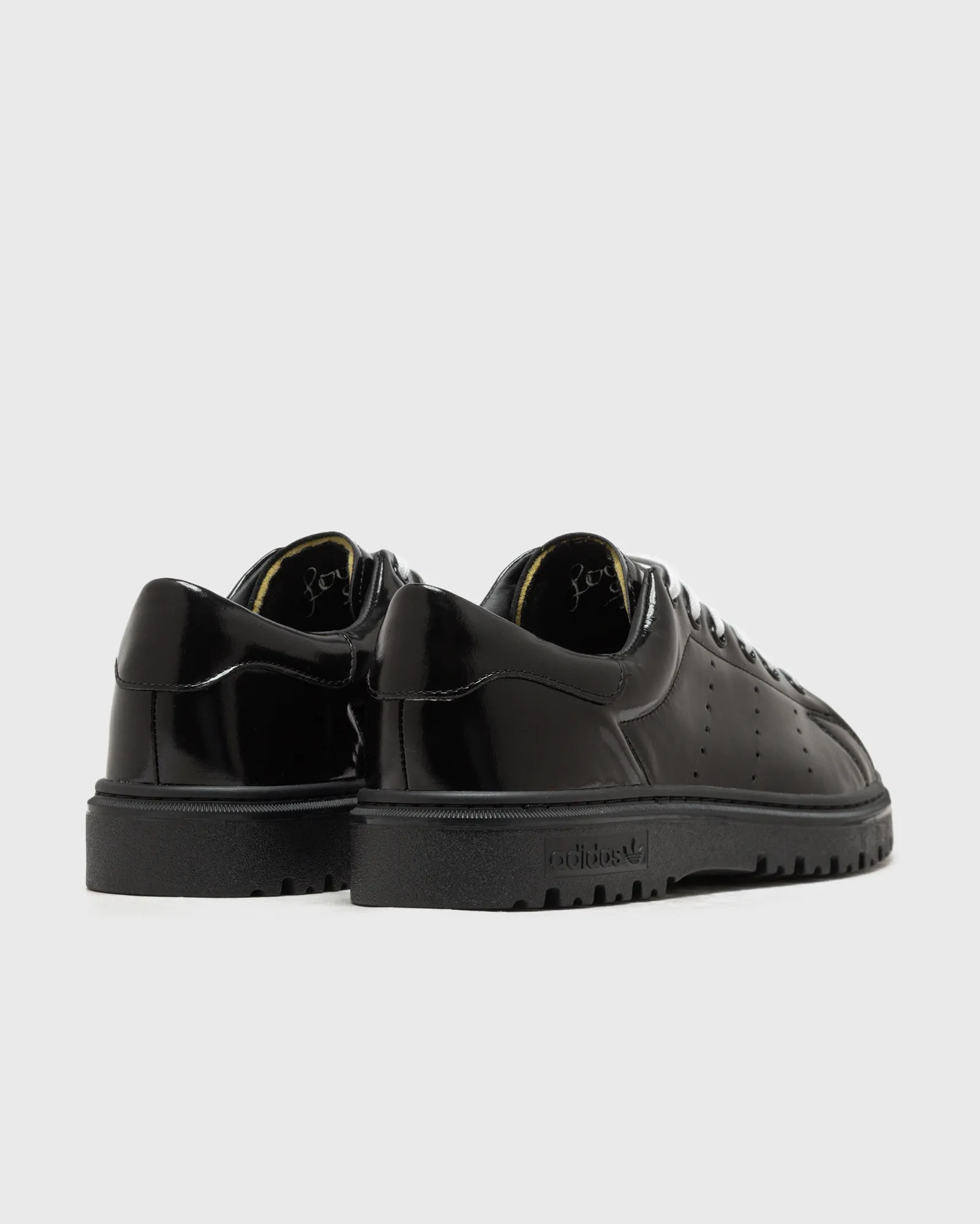 The pack’s SpongeBob Stan Smith Freizeit takes inspiration from SpongeBob SquarePants’ glossy black dress shoes, giving the model a matte black patent leather upper with a clean, dressed-up aesthetic. White laces keep things crisp, while SpongeBob’s smiling face on the tongue and co-branded insoles bring the cartoon charm without overdoing it. The pair is rounded out with a chunky lug sole, as another nod to SpongeBob’s footwear in the cartoon series.
