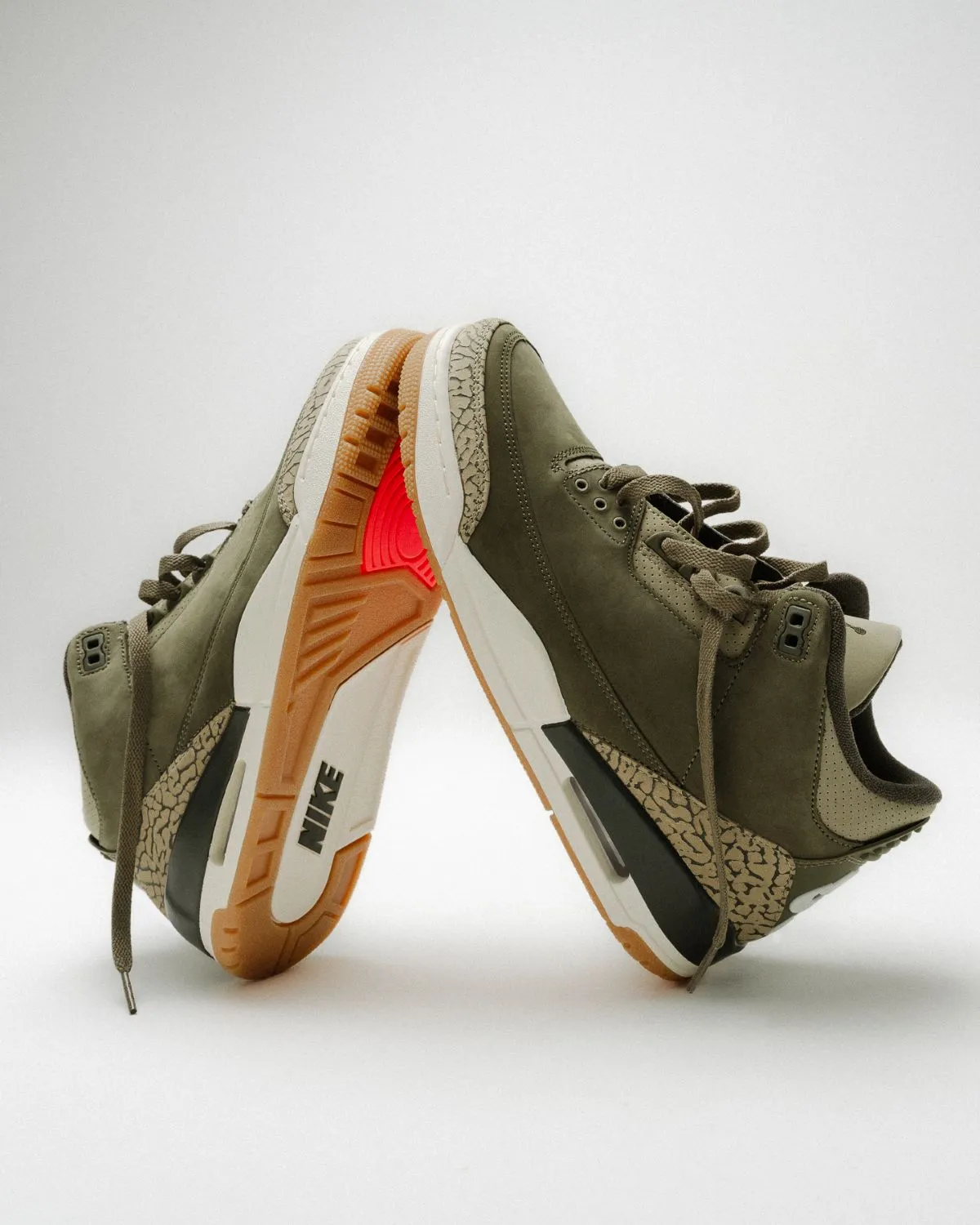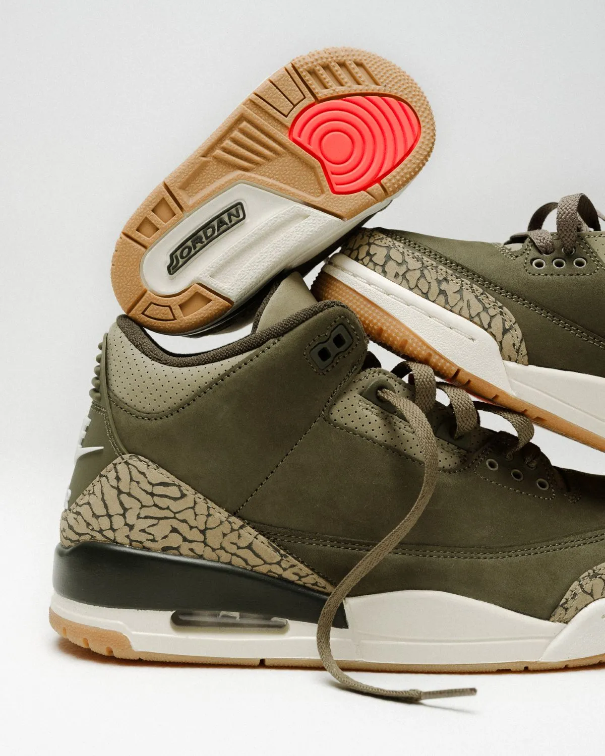 Dressed in eponymous Medium Olive, Sequoia, Total Crimson, and Neutral Olive, the upper pairs premium nubuck with the Air Jordan III’s signature elephant print in a lighter hue. A Sail-colored midsole and gum rubber outsole lock in the fall aesthetic. Classic Nike Air branding on the heel seals the deal on a colorway that serves as a great reminder why the AJ III remains a cornerstone of the Jordan legacy.