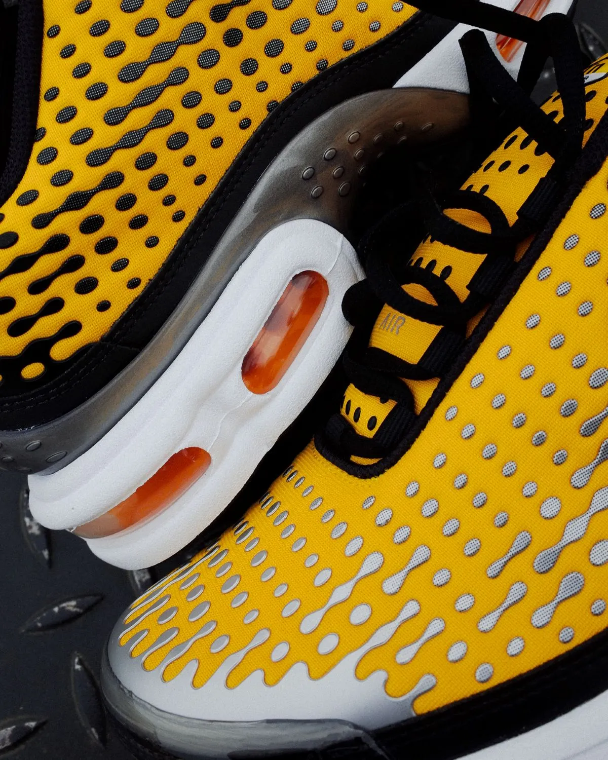 Two decades after its debut, the Nike Air Max Plus VII returns to celebrate its legacy in full force – this time in the bold ‘Varsity Maize’ colorway. First introduced in 2005 as part of the Tuned Air lineage, the silhouette’s wavy design and dynamic stance made it an instant standout. Its latest iteration channels that same energy, glowing in vibrant yellow mesh contrasted by sleek black accents and metallic gradients that nod to the original’s high-octane DNA.