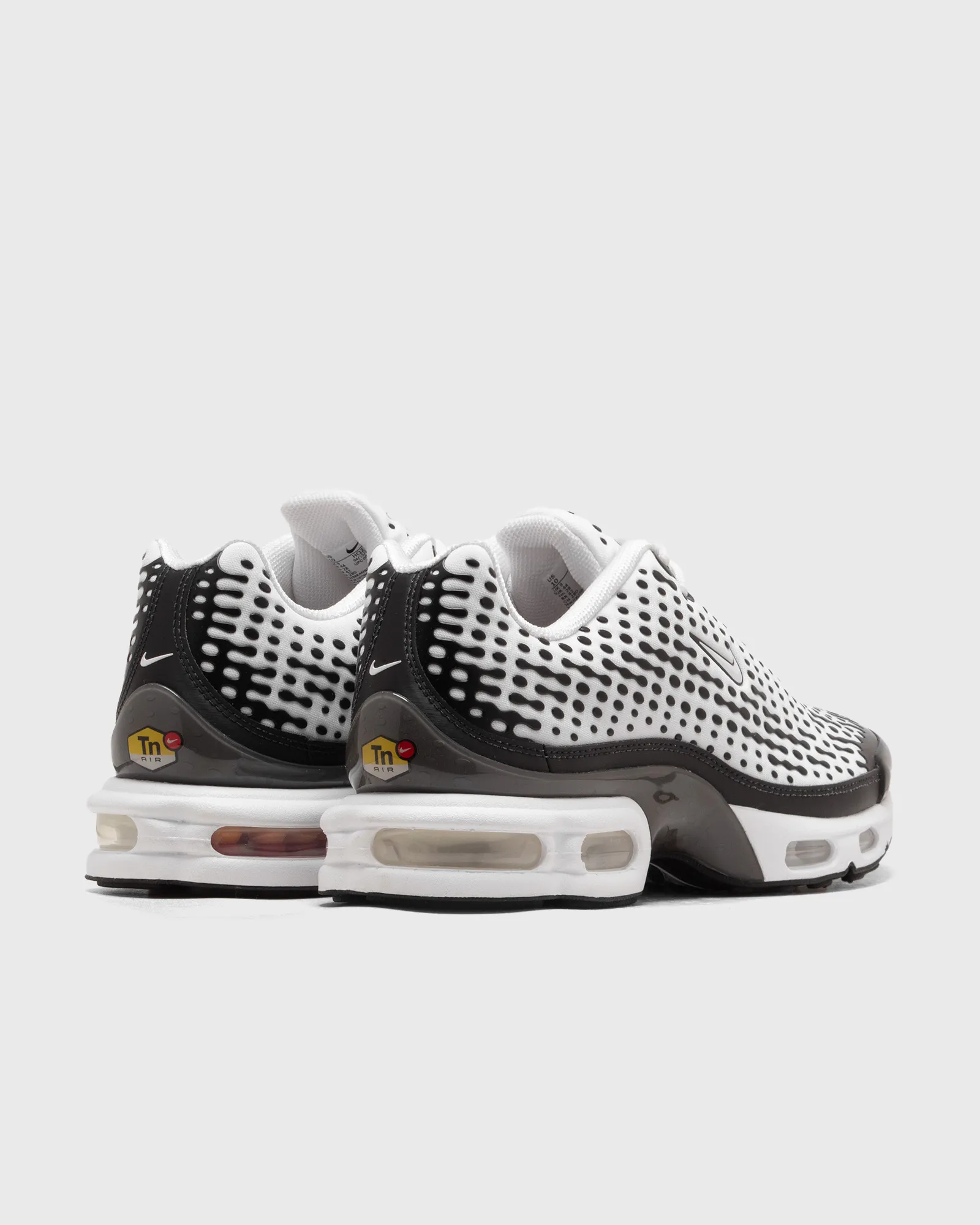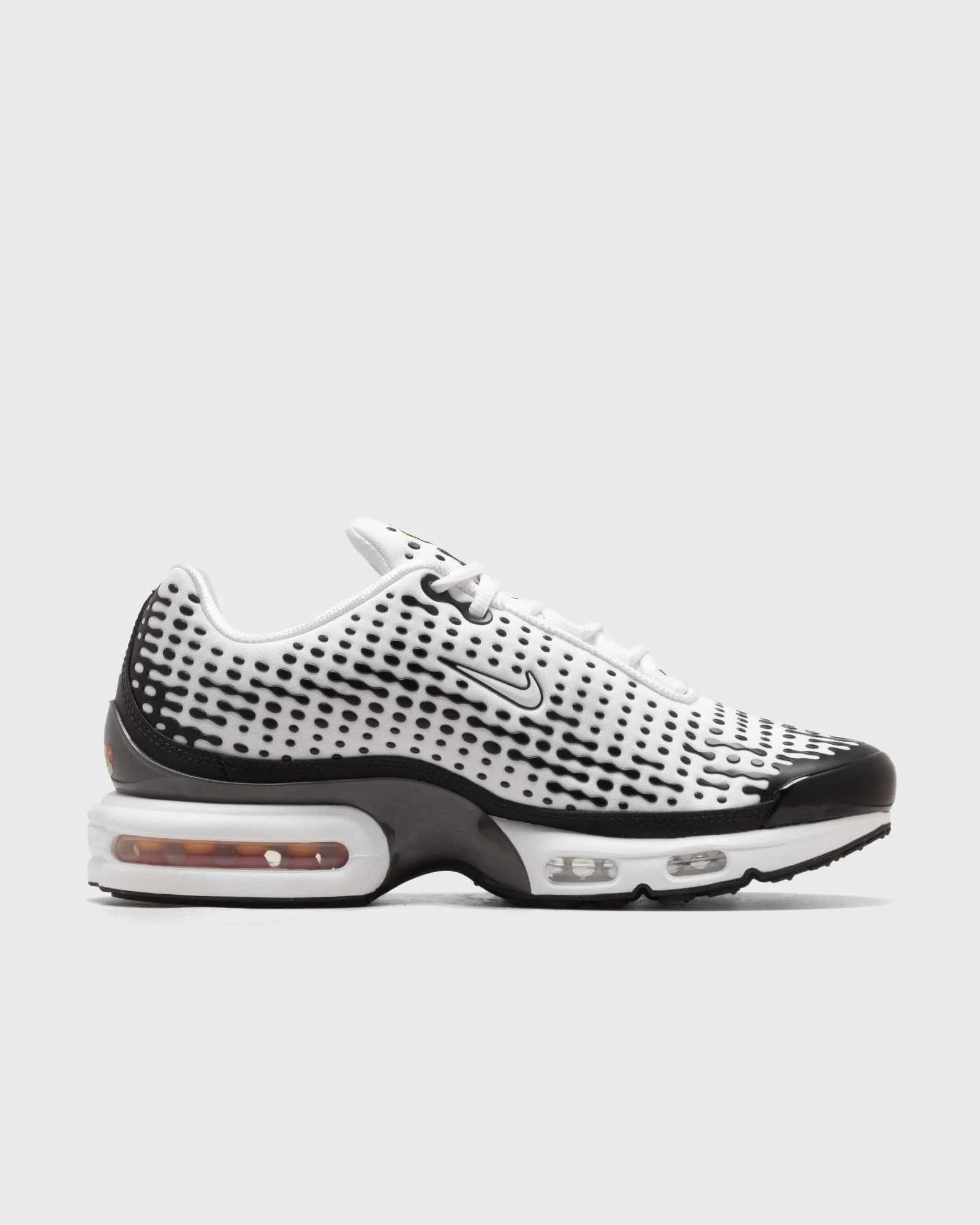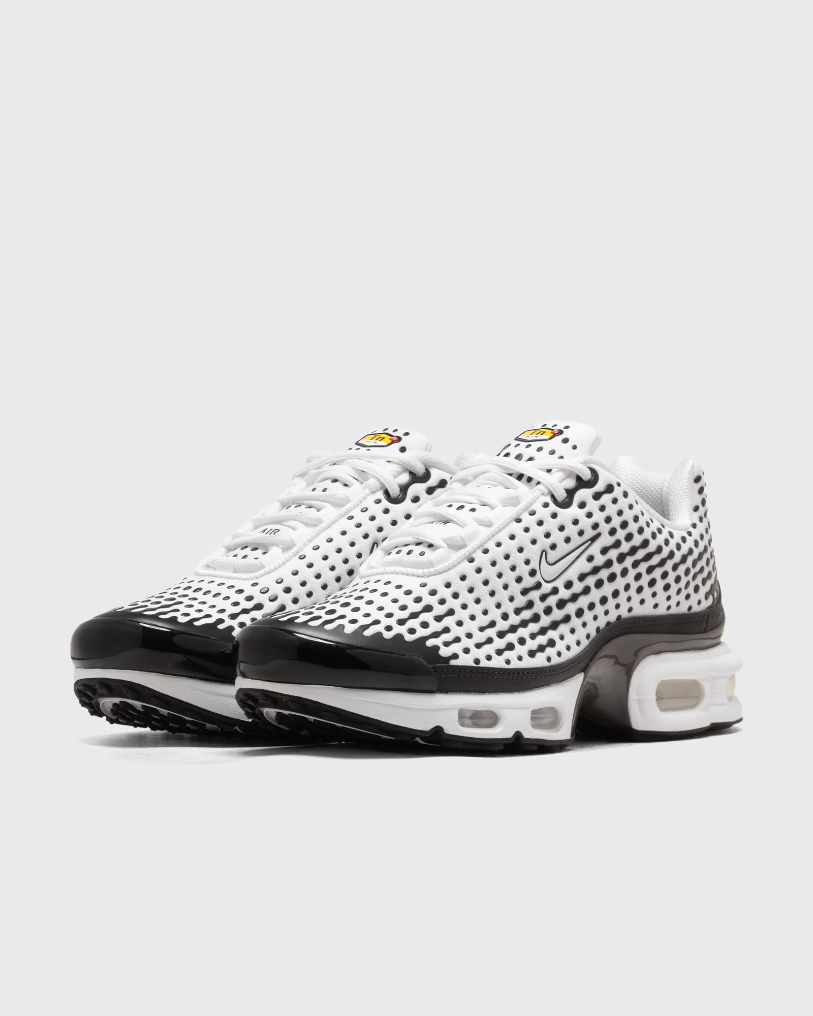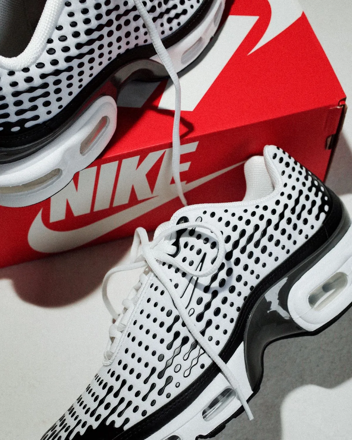 The upper of the Air Max Plus VII ‘White Black’ comes dressed in crisp white mesh, contrasted by a black TPU wave pattern that defines the model’s aggressive yet aerodynamic look. Glossy overlays at the toe and heel add structure and shine, while mini Swooshes and the Tuned Air tongue badge lock in the nostalgia. Underfoot, full-length Air cushioning ensure smooth comfort.