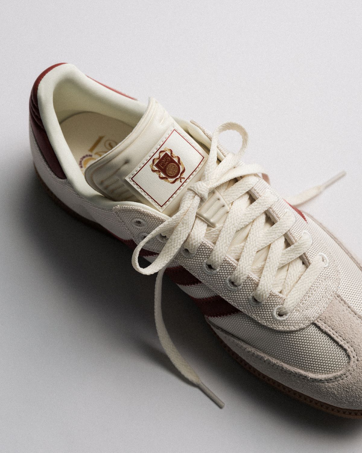 While BSTN’s recent collaboration with FC Bayern and adidas has focused on the franchise’s basketball team, resulting in special editions of the Dame9 and Centennial, this latest general release channels the club’s roots in football: The timeless adidas Samba is wrapped in sophisticated cream and burgundy. The usual leather upper is replaced with a knit fabric, which not only enhances comfort but comes just in time for spring. The club’s logo on the tongue, with a subtle homage to its 125th anniversary, and the iconic brown gum sole round out the collab.