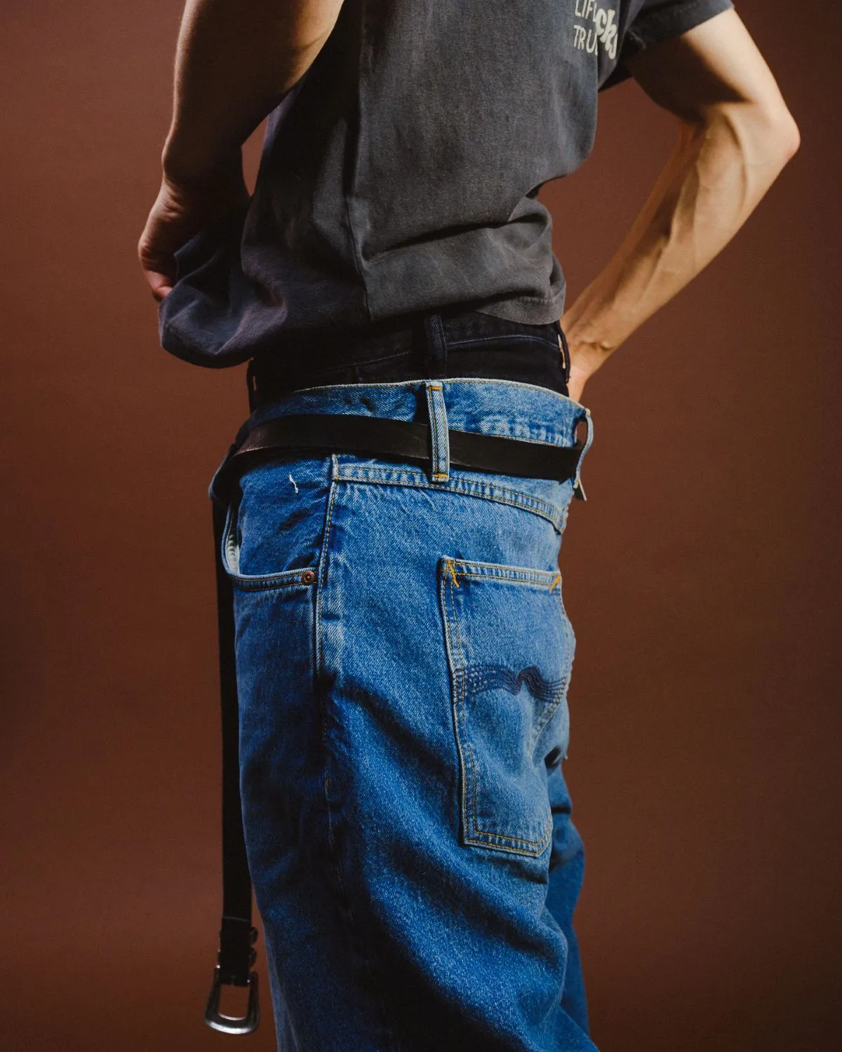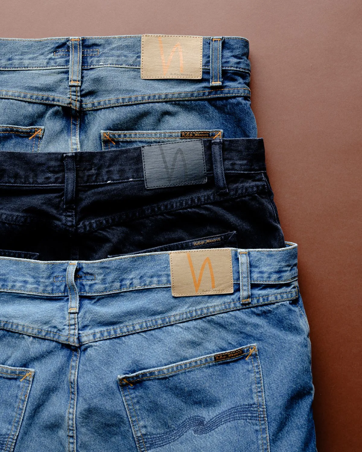 That philosophy is woven into every seam: Crafted from high-quality denim and instantly recognizable thanks to the signature (often-)orange back-pocket stitching (a subtle nod to Gothenburg’s construction cranes), Nudie Jeans balance Scandinavian functional thinking with a signature touch. Clean silhouettes, strict typography paired with hand-drawn elements, and unmistakable visual language make their jeans timeless rather than time-bound. These are not pieces designed for a season – they’re built to stay.