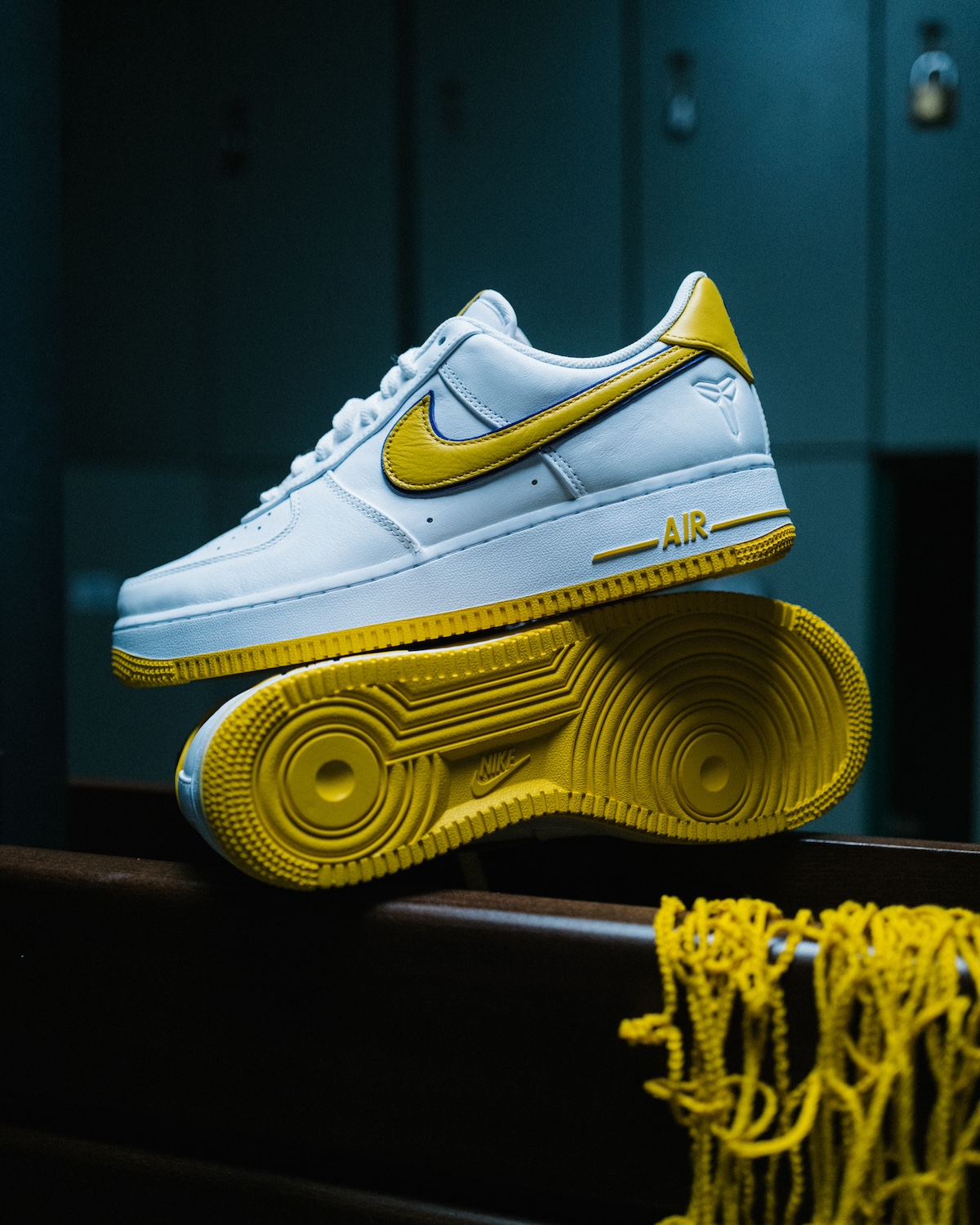 A special edition of the legendary Nike Air Force 1 Low returns featuring Kobe Bryant’s logo and his number 8 alongside the Swoosh. The white and yellow color scheme is reminiscent of Kobe’s on-court endeavors in the silhouette back in the 2000s. Now, this limited-edition release returns as a special tribute to that connection.