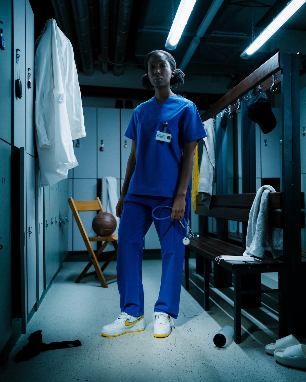 Built around the iconic ‘Job’s not finished!’ quote from the NBA Finals, BSTN’s accompanying campaign is headlined by two protagonists who embody one of the Mamba’s most concise mantras. Set in a dressing room, the change from the outfits required for a day job / school day to the gear for a session of youth basketball (coaching) exemplifies the dedication that is required on the pursuit of greatness, a repetitive decision-making process as difficult as it is essential.