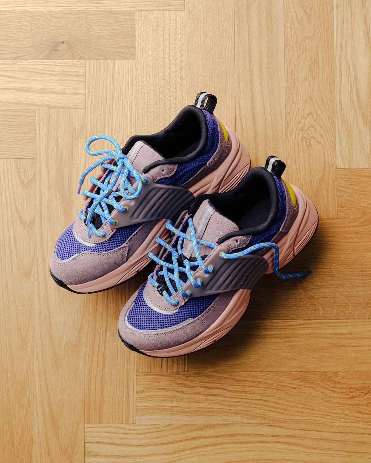 The inaugural colorway of this cross trainer and retro runner blend boasts different shades of purple and grape as well as a dash of photo blue and yellow, most notably on the laces and the heel branding.