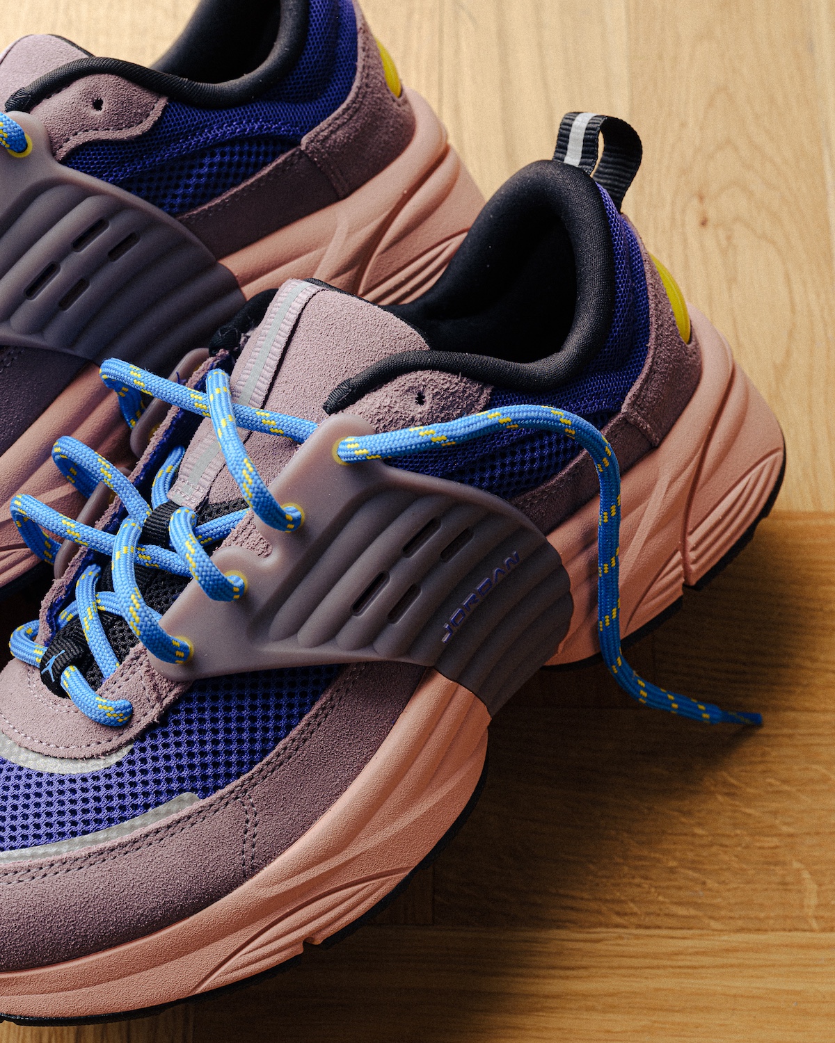In the mid to late 90s, Jordan’s Trunner series was already turning heads as a multifunctional cross trainer with bold design features and even bolder color combinations. The all-new O/S SP carries on specific features of the original – from the multifaceted skill set to the distinct segmentation of the midsole – but takes the design into the future with its own unique twist, led by the eye-catching lateral wing piece.