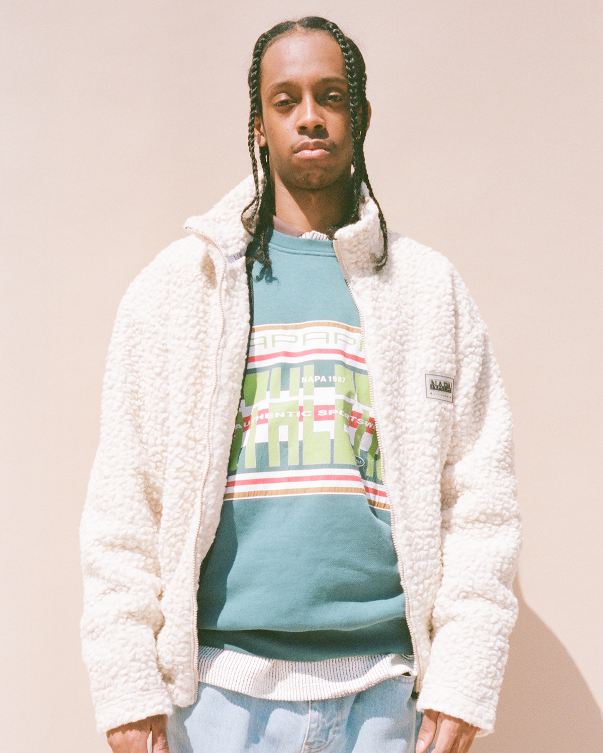 Rose’s heritage and Napapijri’s fusion of fashion and cultural resonance are channeled into a line that combines sportswear inspiration, preppy varsity codes and minimalist logos. The collection includes classic full-zip fleeces, luxurious sweatshirts and t-shirts as well as polo shirts in striped patterns developed with innovative sponge towel AOP technology.