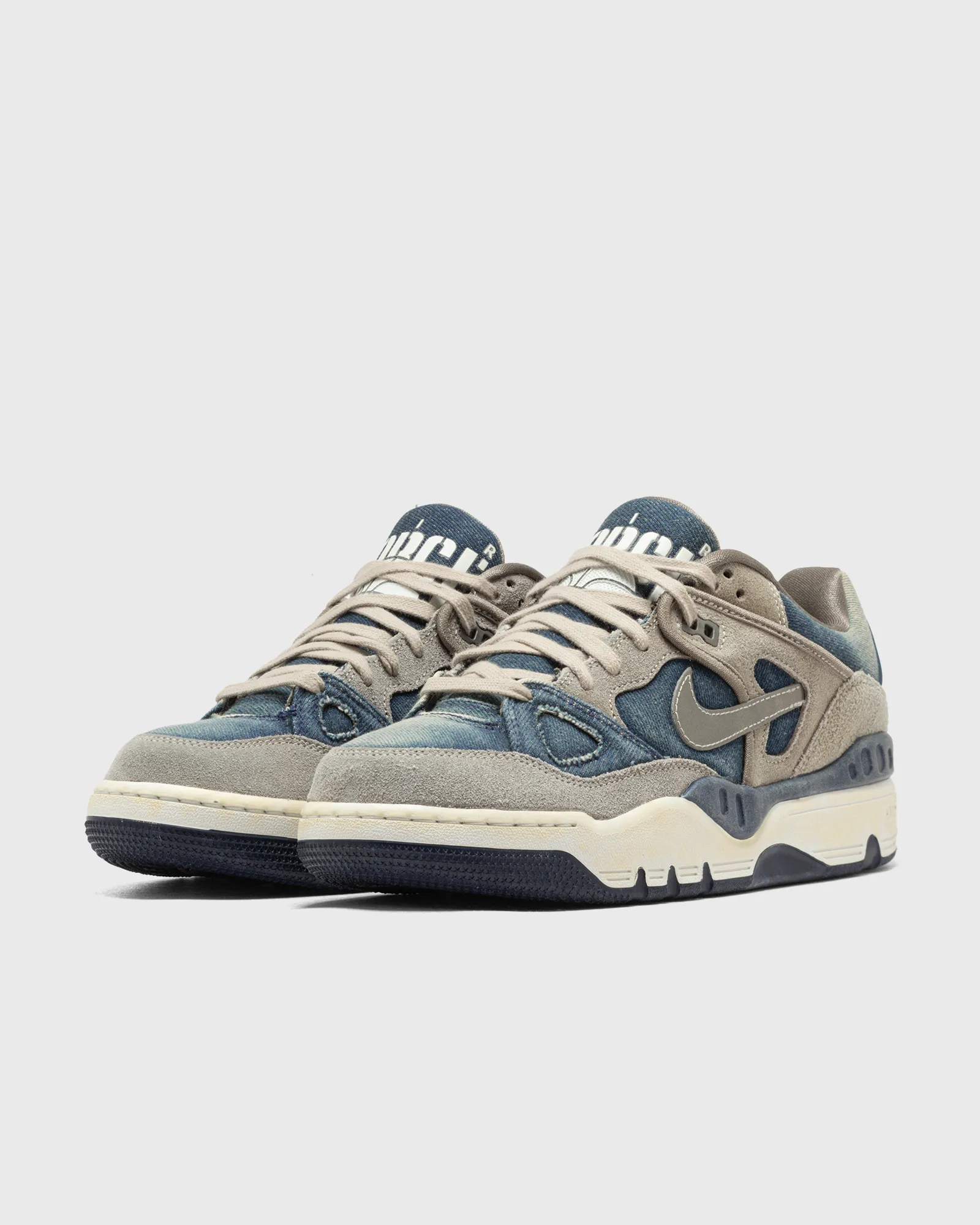The two pairs feature Levi’s denim overlays and premium suede, with the ‘Olive Grey’ leaning into washed denim, distressed surfaces and aged midsoles that echo the character of vintage denim.  The ‘Enigma Stone’ pairs deep-blue denim panels with earthy-toned suede for a subtle edge. Co-branded Levi’s tabs, oversized tongue logos, and metallic dubraes stamped with ‘Air Force’ continue the storytelling on both colorways. Vintage Levi’s artwork on the insoles and NIKE AIR and OGIN (‘NIGO’ backwards) FORCE callouts on the heel tabs round out the detail-driven collab.