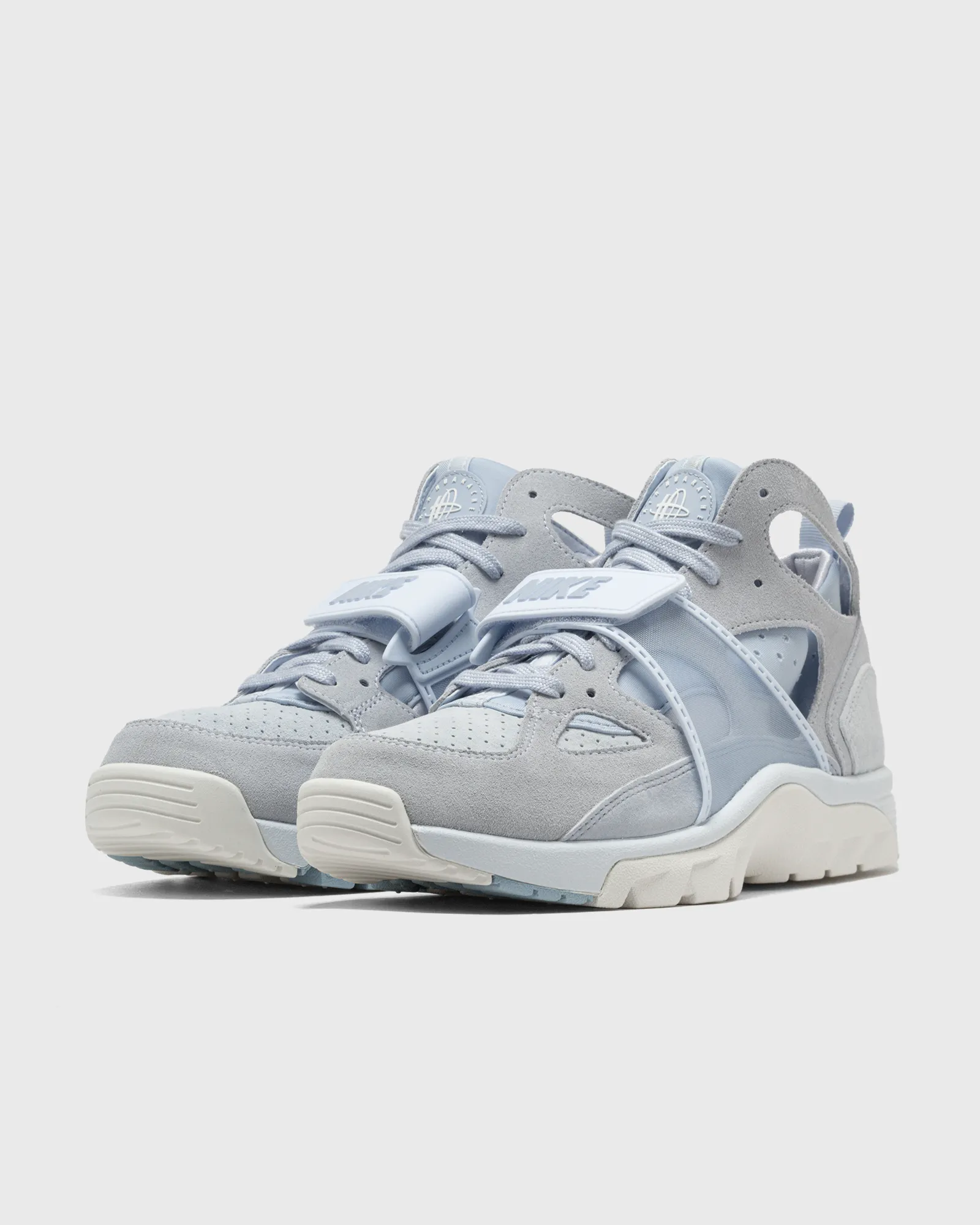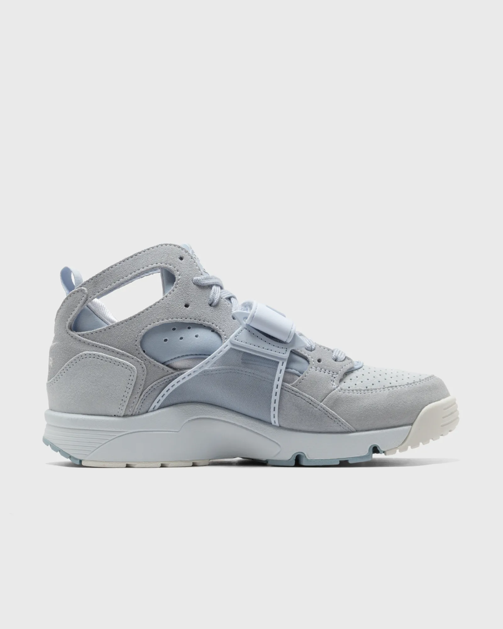 Releasing in ‘Sail/Light Khaki’ and ‘Blue Tint’, both colorways blend suede and mesh for a fresh yet retro-inspired look. Boasting the Huarache Trainer’s iconic midfoot strap, the shoes come with the signature inner sock construction which encloses the foot via a stretchy neoprene bootie for a secure fit and comfort. A hiking-inspired sole rounds out the outdoorsy-meets-sporty aesthetic of the pairs.
