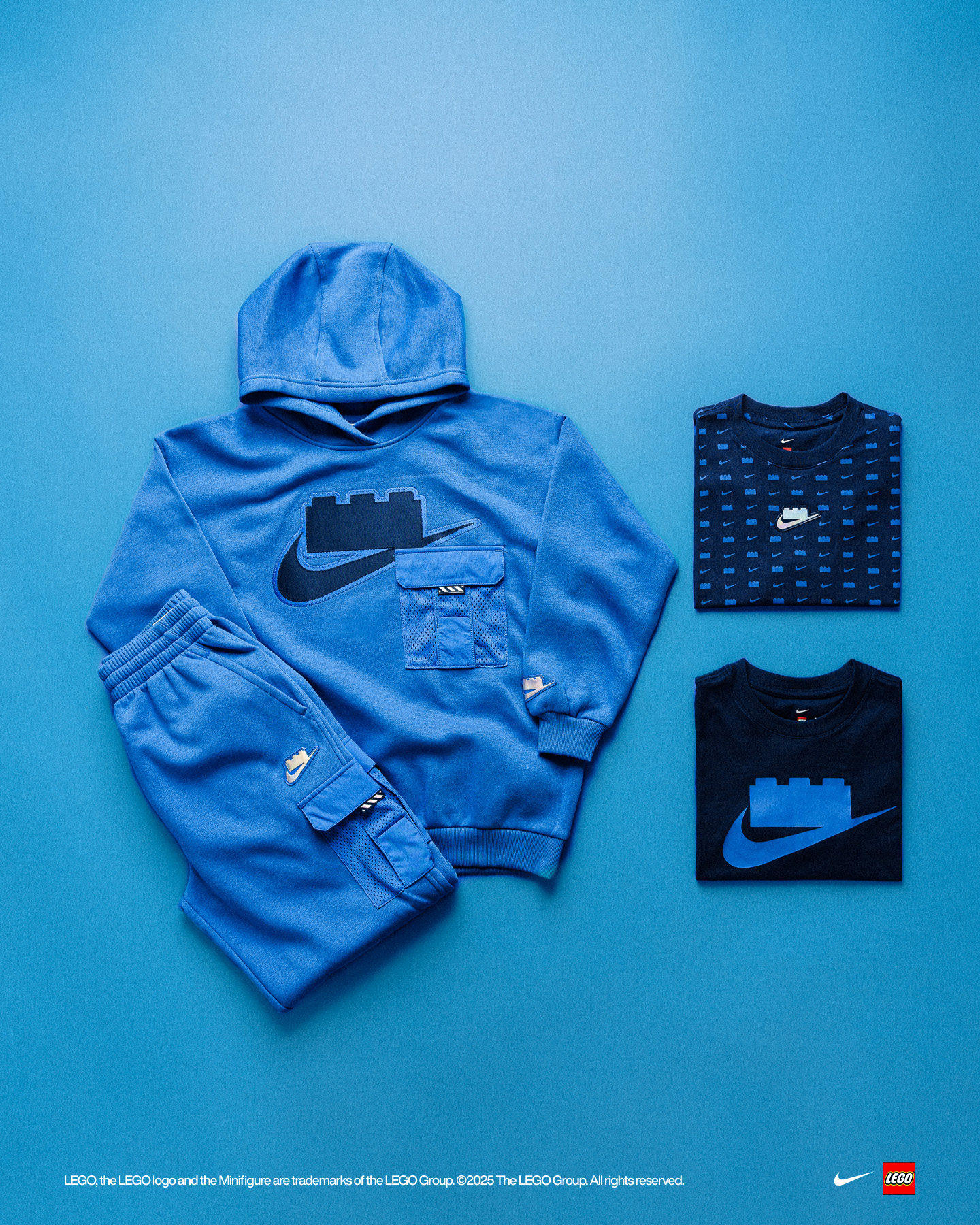 Once again directed at the next generation of master builders and aspiring adults – sorry not sorry, adults – the latest release includes several galaxy-themed sportswear essentials, including tees and an entire basketball jersey set, alongside unique accessories bearing the special Swoosh and brick logo like a backpack and a youth basketball.