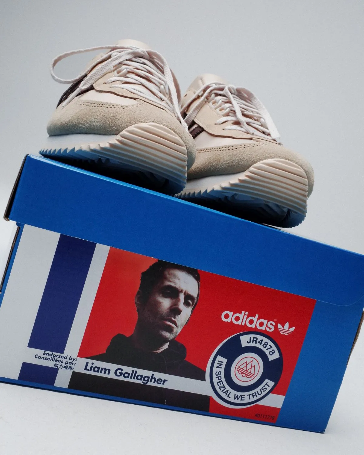 Liam puts his stamp on the adidas Achille, staying true to its OG catalogue appearance with a beige–and–brown treatment, complemented by suede overlays and retro outsoles for a fresh look. Rounding out the highly anticipated pairs are bespoke insoles.
