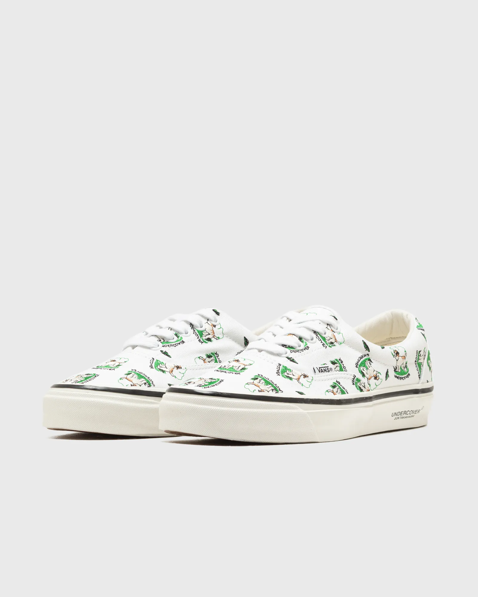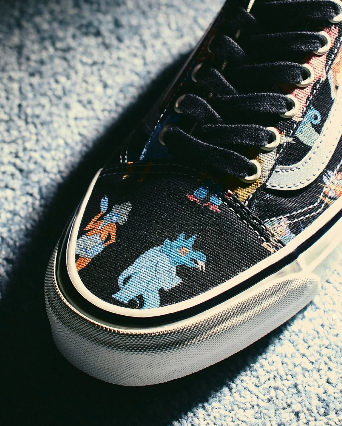 The Old Skool 36 features artwork by Spanish artist Josep Baqué (1895-1967), whose intricate illustrations of imaginary creatures – part of a surreal world that continues to inspire to this day – bring a unique twist to the familiar shape. The Era 95, on the other hand, carries embroidered sketches of designer Jun Takahashi’s dog, X – a personal motif that adds warmth to the collection’s understated tone.