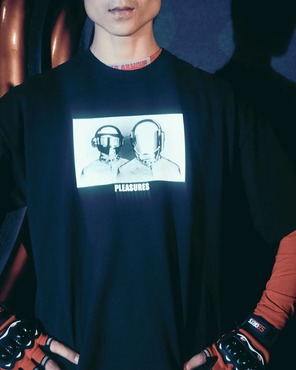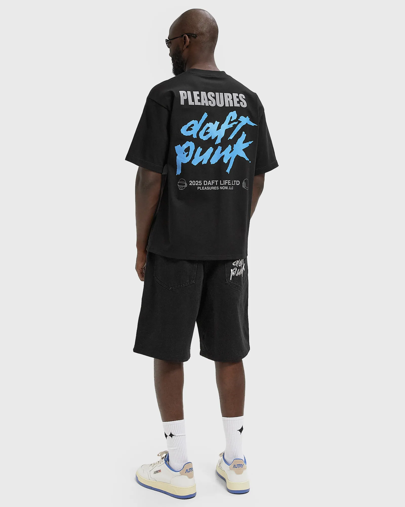 PLEASURES has teamed up with Daft Punk for an exclusive capsule collection that fuses the electronic duo’s cyberpunk aesthetics with streetwear sensibilities. Inspired by some of their most iconic visuals, the result is a bold reinterpretation of Daft Punk’s visual identity, with the duo’s unmistakable robot helmets and logo reappearing across denim, tees, and beyond.