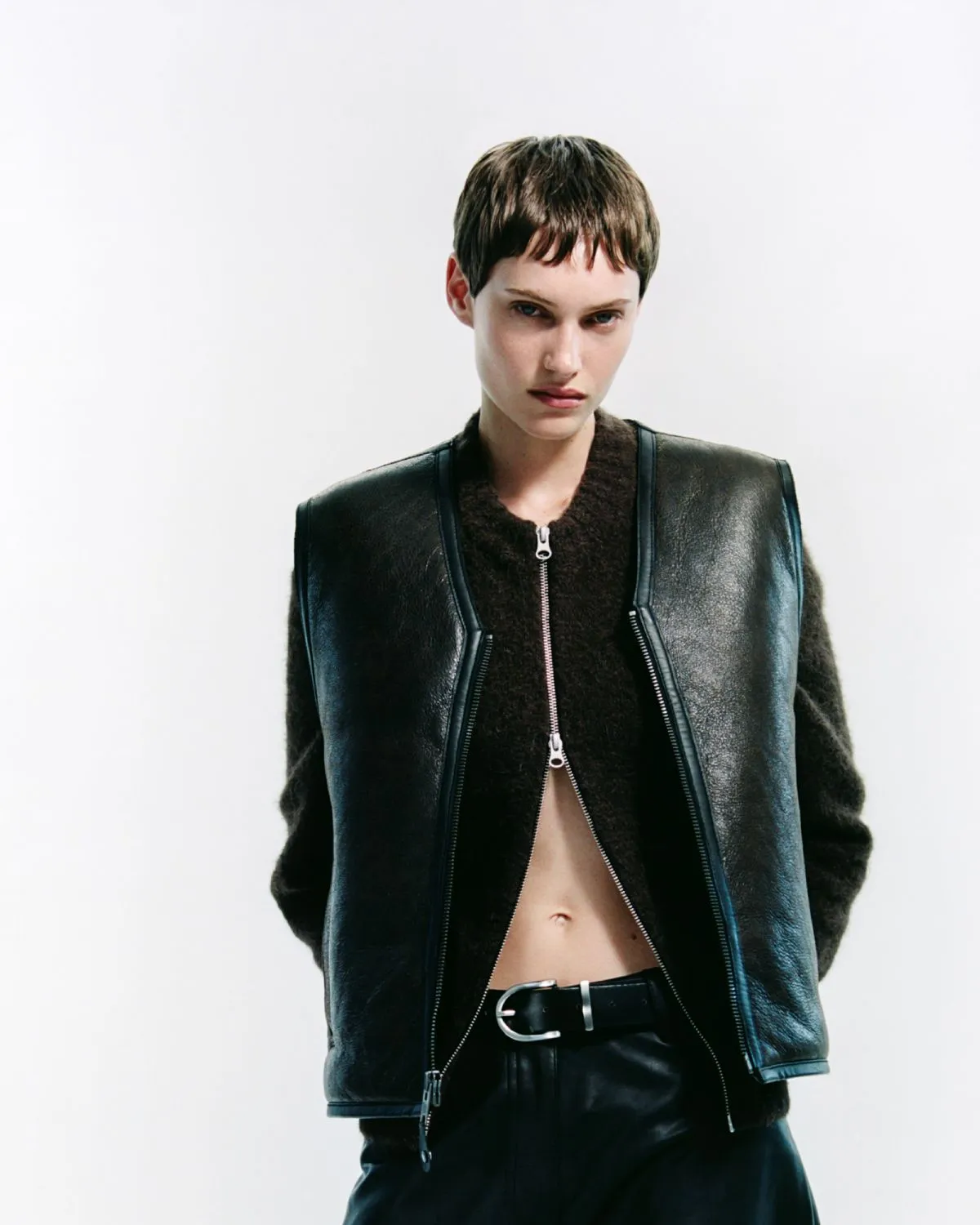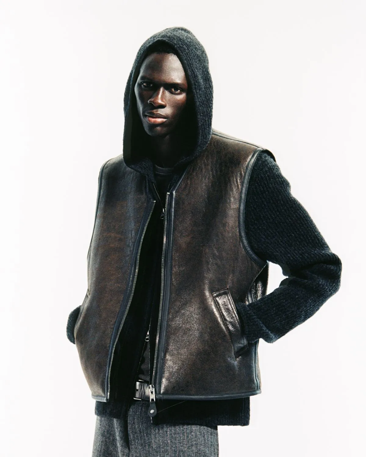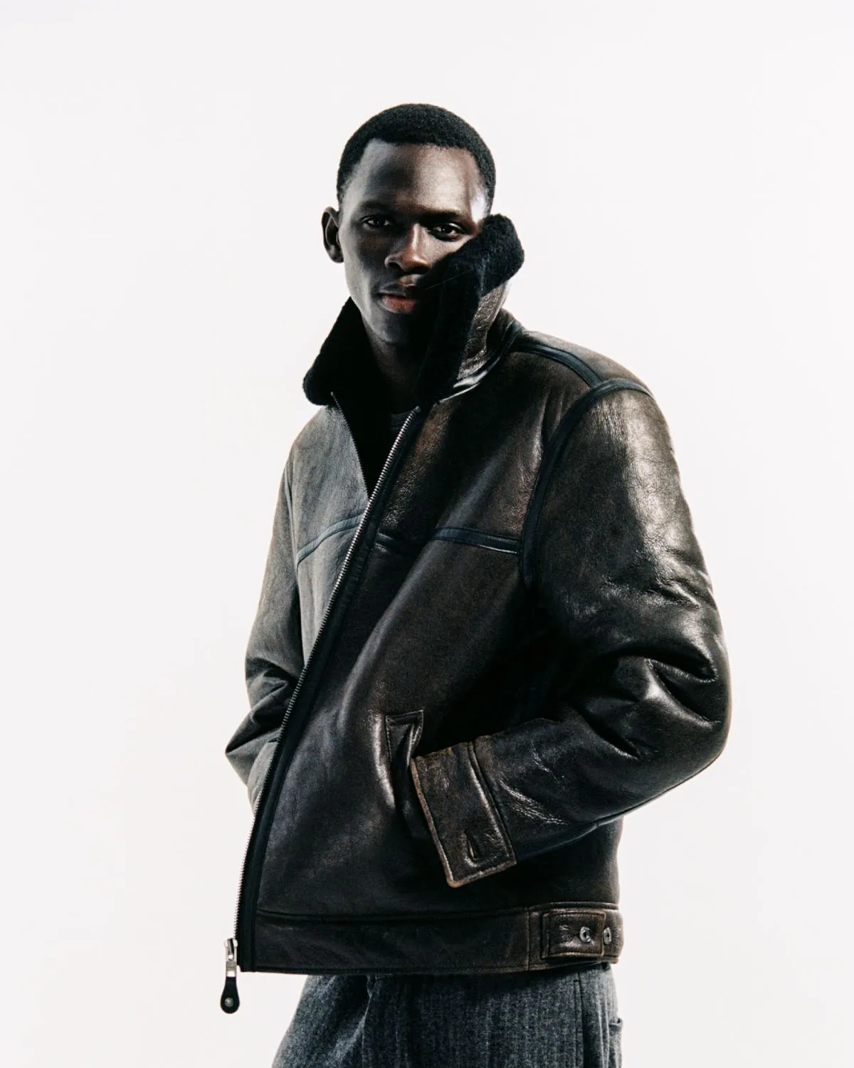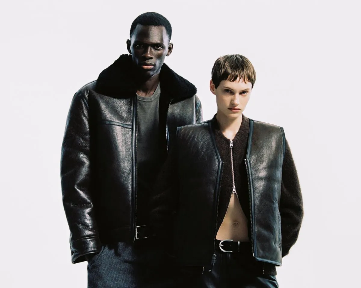 Leading the line, the Women’s Safreya Jacket reworks the traditional aviator with supple sheep leather, shearling lining, and signature leather piping – also available as a Safreya Vest for a lighter layering option. Its counterpart, the Men’s Saboy Jacket, carries the same rugged DNA in a bomber-style cut with welt pockets and buttoned cuffs, while the Saboy Vest channels that same utility in a stripped-down form. Every piece is crafted from responsibly sourced LWG-certified leather, ensuring the capsule’s enduring craftsmanship matches its refined aesthetic.