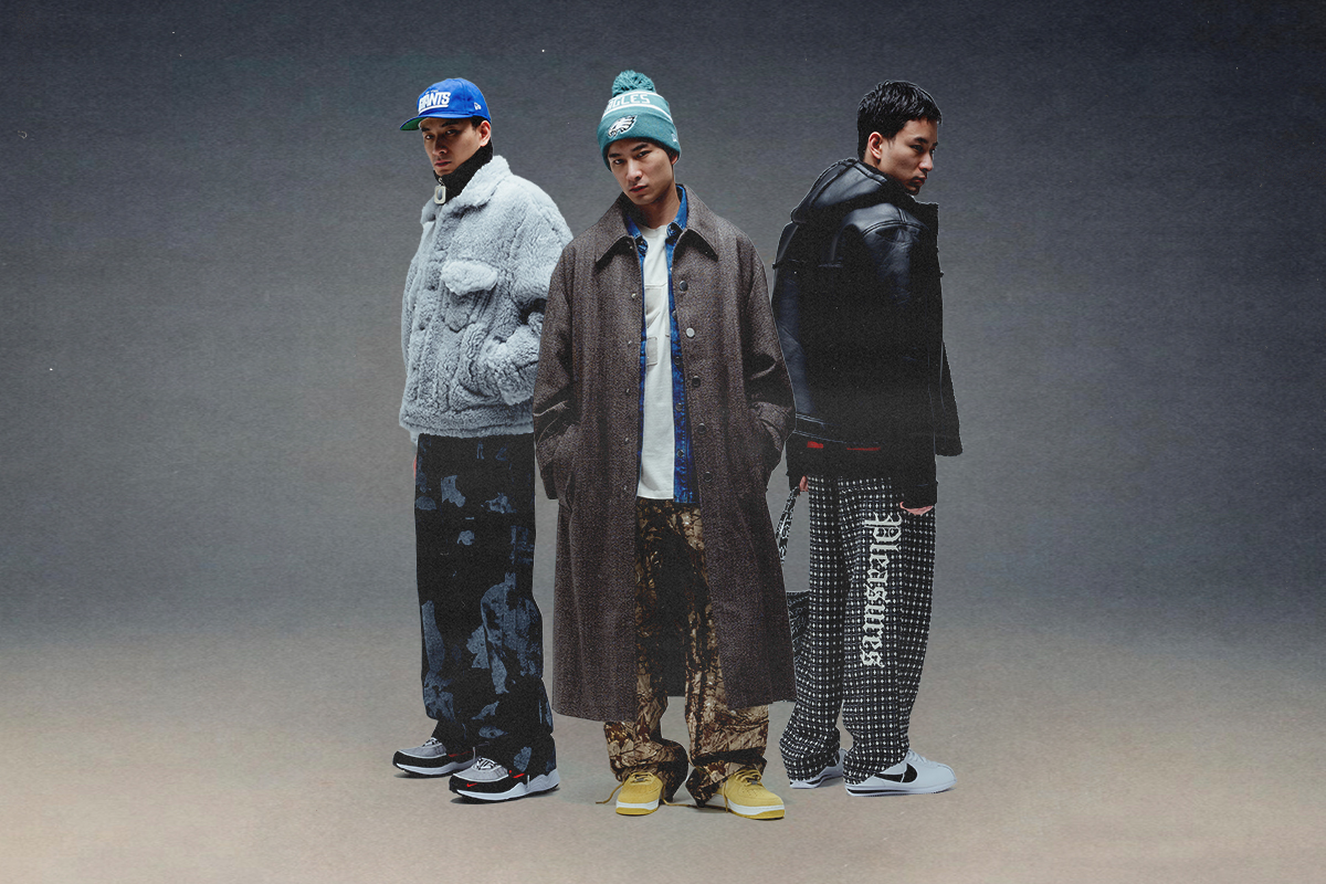 Despite sticking to a neutral palette, the look remains fresh because the thoughtful balance of proportions and fabrics gives it visual interest. This minimal base also acts as the perfect canvas for pops of color, as seen on the footwear and headwear side here, adding energy via carefully chosen bursts of vibrancy.