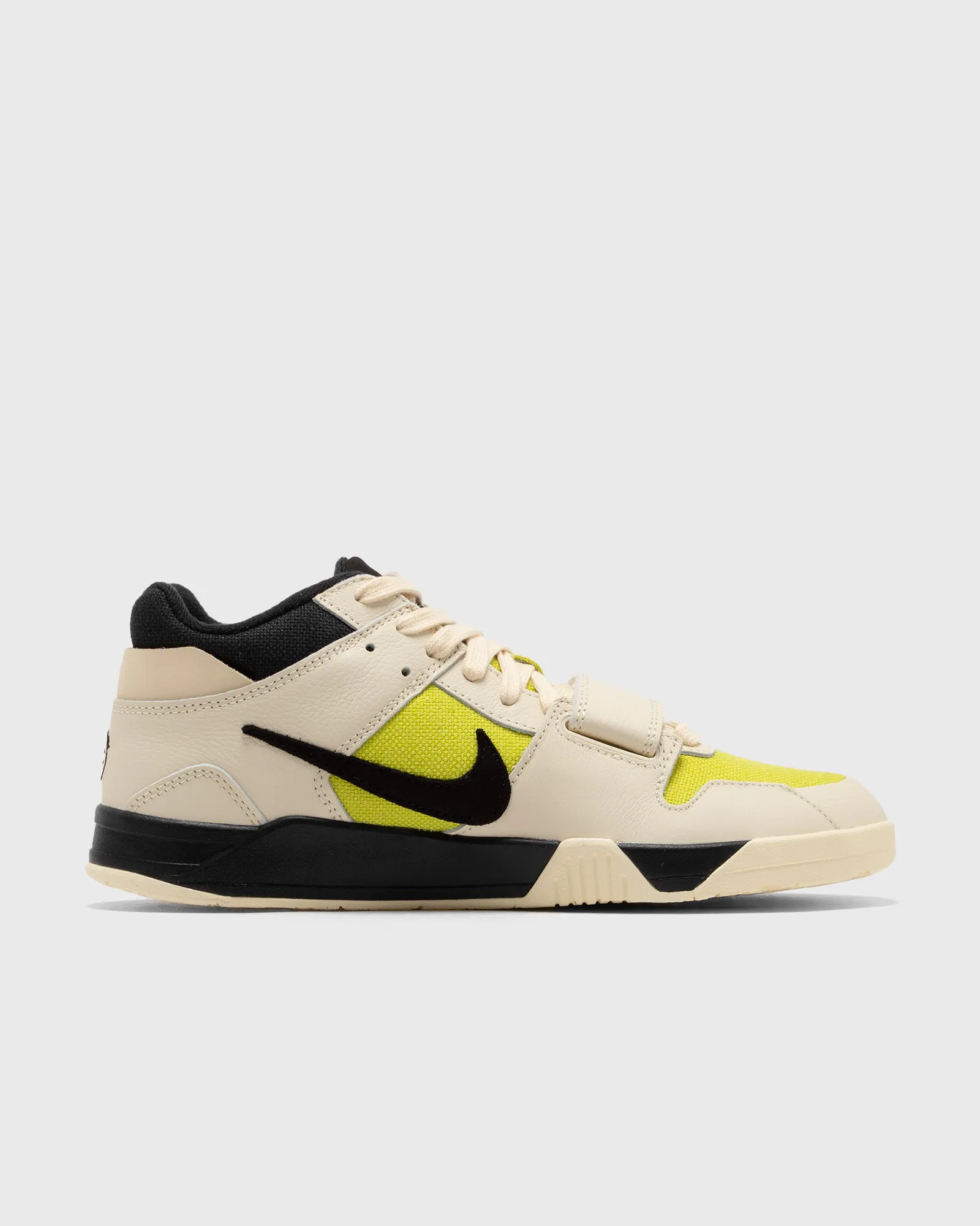 The pair showcases a bold canvas upper in the eponymous ‘Bright Cactus’ hue, complemented by Muslin tumbled leather overlays and a robust midfoot strap. Black accents on the tongues, collars, inner lining, and the iconic Swoosh logos create a sharp contrast that emphasizes the shoe’s vivid color scheme. A Cactus Jack face logo is featured on the back heel, while the cream-colored rubber outsole, adorned with black lettering, completes the design.