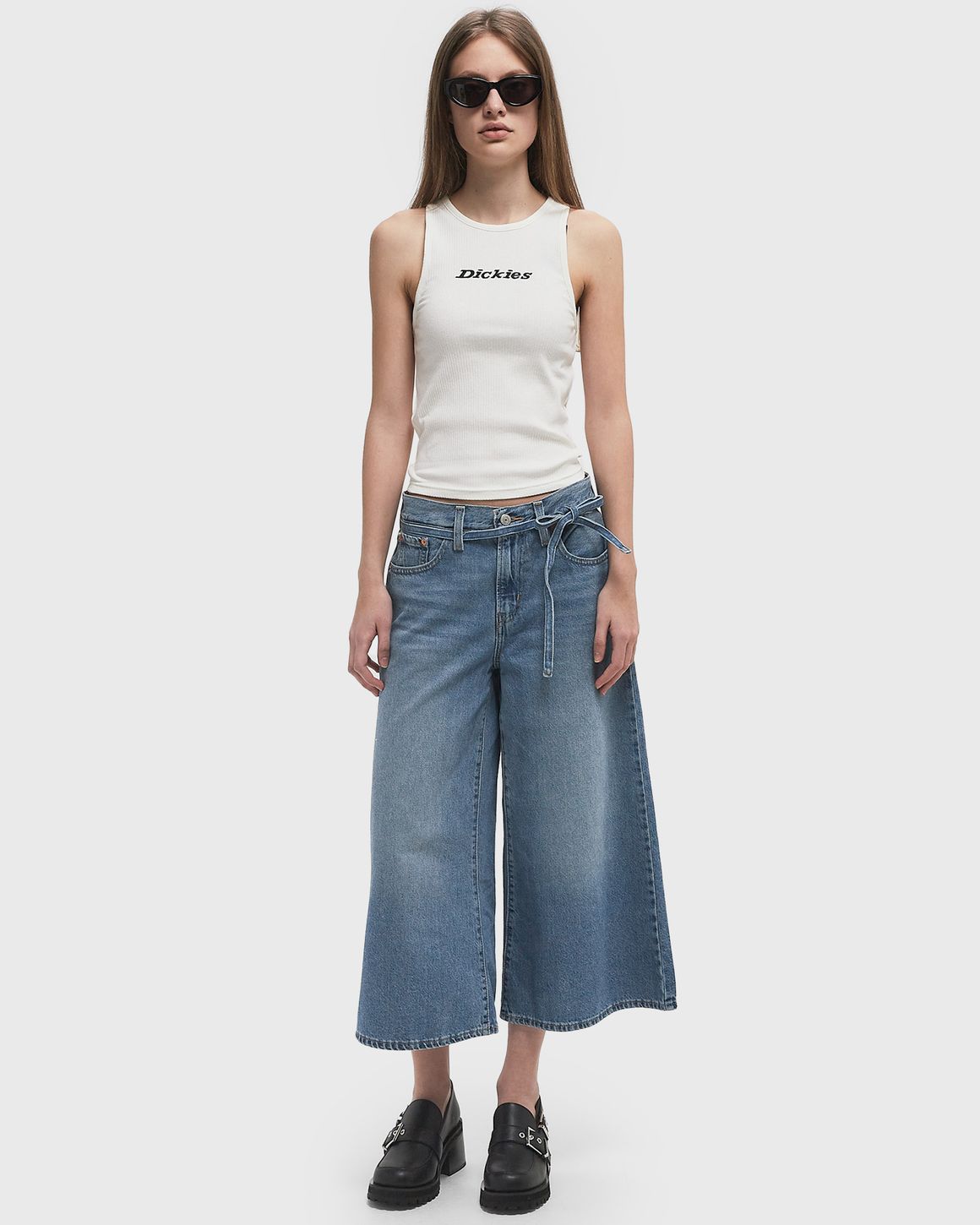 An oversized baggy cut, a culotte design and a wide, straight leg create these XL Culotte jeans from Levis. An adjustable tie belt provides additional versatility.