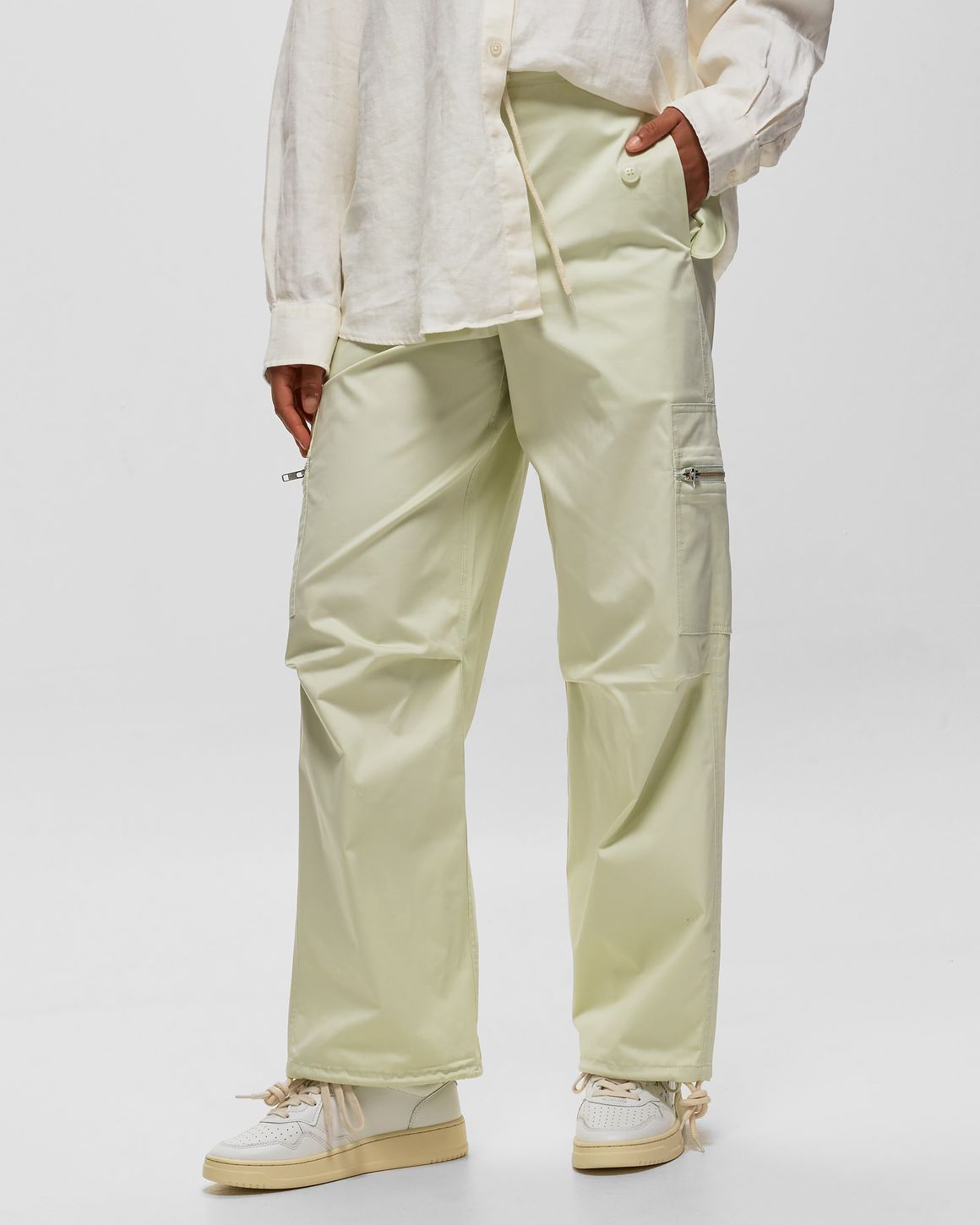 The Chi Trousers by Samsøe & Samsøe are casual-fitting cargo pants with wide legs. They feature a drawstring waist and cuffs, and pockets in the side seam and down the side of the leg. The pants are made of cotton fabric with stretch and have pleated knees.